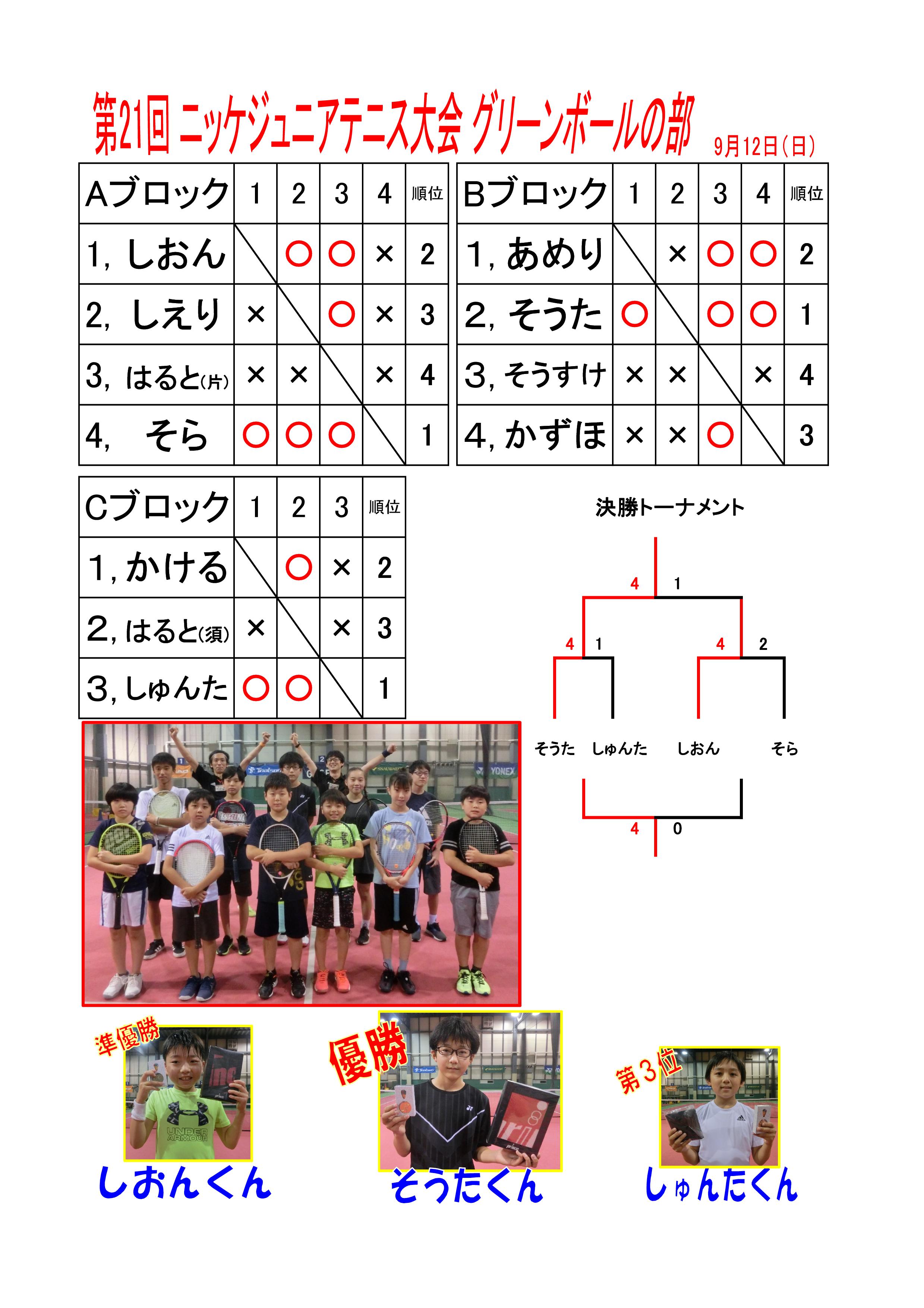 イベント結果 第21回 ジュニア大会 イエローボールの部 結果報告‼ 2021年09月20日 第21回 ジュニア大会 グリーンボールの部 結果報告‼ 2021年09月12日 第21回 ジュニアテニス大会 オレンジボール部 結果報告‼ 2021年09月05日 第21回 ジュニアテニス大会 レッドボール部 結果報告‼ 2021年08月29日 第2回 アベレージ限定女子ダブルス 結果報告‼ 2021年08月22日 18 / 21« 先頭«...10...1617181920...»最後 »