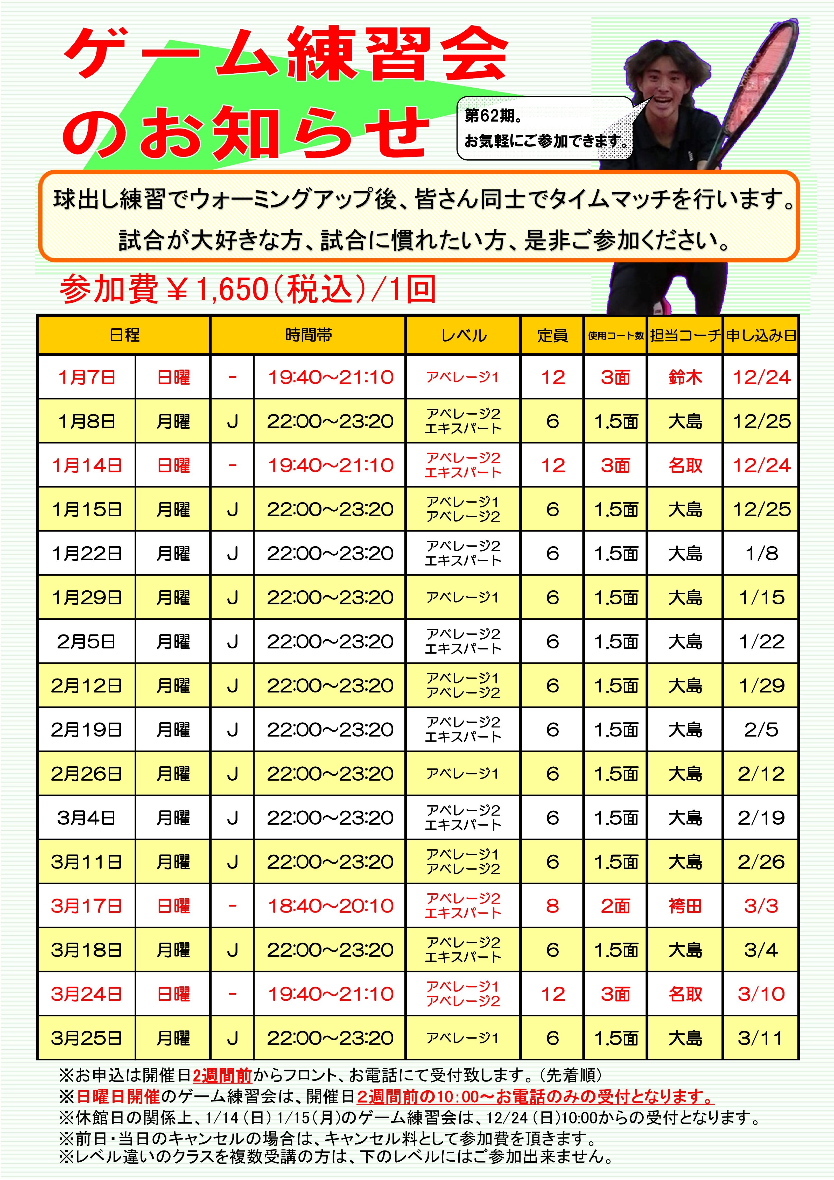 第62期 ゲーム練習会 日程 発表‼