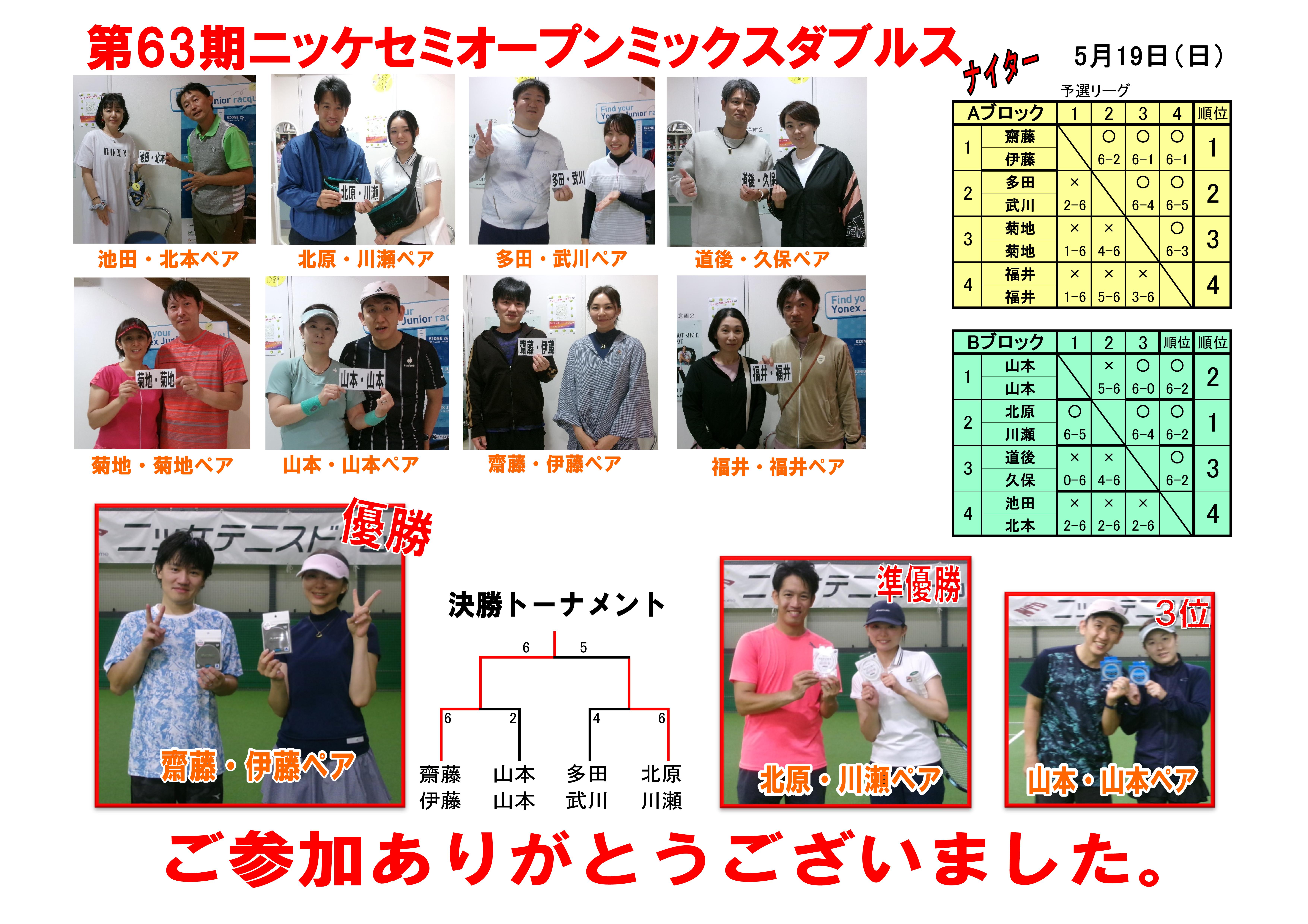 イベント&新着情報 第63期 セミオープンミックスダブルス 結果報告‼ 2024年05月20日 « 第63期 セミオープン男子ダブルス 結果報告‼ 第63期 第10回 チャレンジ男子シングルス 結果報告‼ »