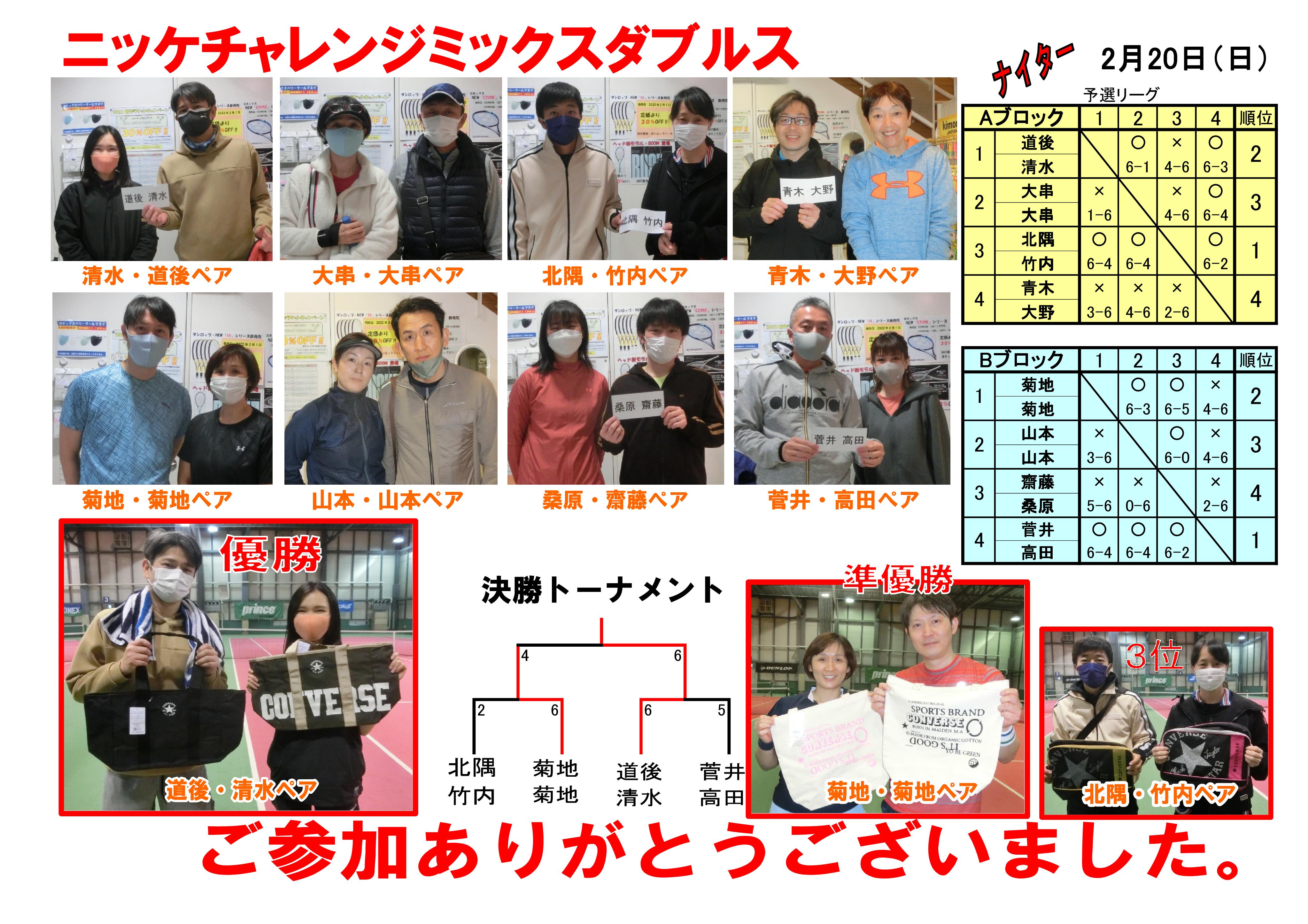 2/20 チャレンジミックスダブルス 結果報告‼