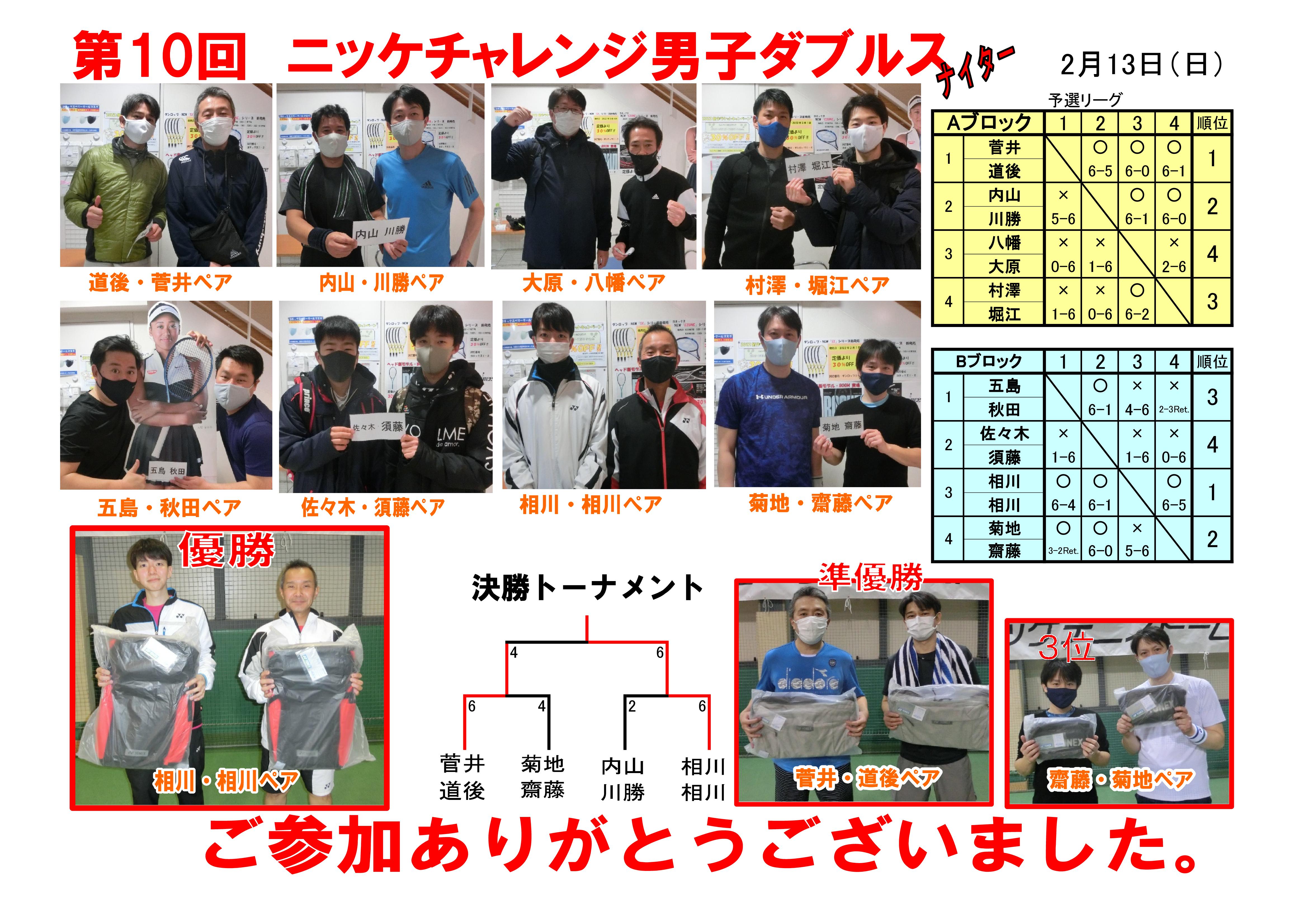 2/13 第10回 チャレンジ男子ダブルス 結果報告‼